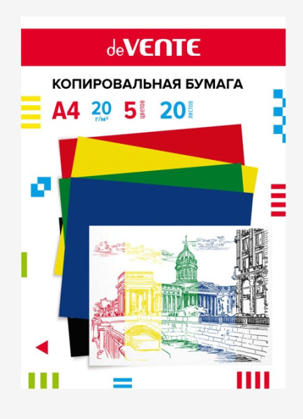—Копировальная бумага deVENTE, А4, 20 л, 20 г;м2, (красный, желтый, зеленый, синий, черный), 2041307