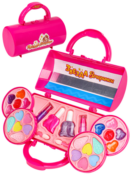 —Набор детской косметики, ( сухие тени, блеск для губ, румяна, накладные, аппликатор, лак), НДК-3155
