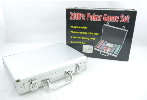 —Набор для игры в покер (200 фишек, 2 колоды, фишки диллера, 5 кубиков,), метал. кейс, ИН-0143