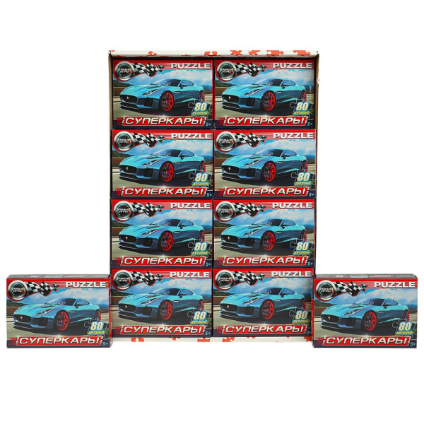 Пазлы классические в коробке. 80 деталей. 130х90х25 мм, 'Суперкары', 367492