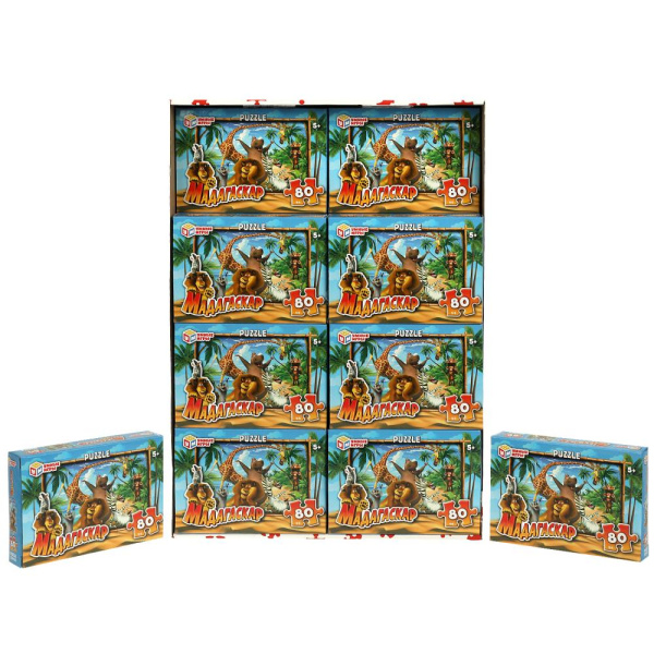 —Пазлы классические в коробке. 80 деталей. 130х90х25 мм, 'Мадагаскар', 367490
