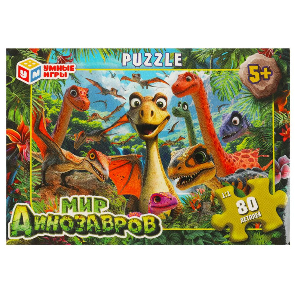 —Пазлы классические в кор. 80 деталей. 130х90х25 мм, 'Мир динозавров', 374059