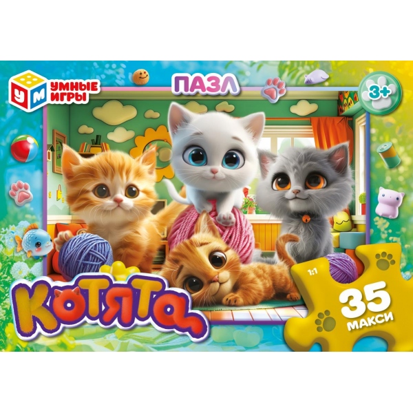 —Макси-пазлы в коробке. Котята. Пазл 35 деталей. 180х127х35 мм. Умные игры, 387353