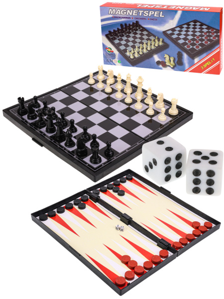 —Игра 3 в 1, 'Шашки, Нарды, Шахматы' 29х15х3.5 см, пластик на магните в коробке, AN02576