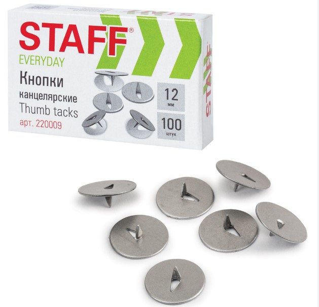 Кнопки канцелярские STAFF 'EVERYDAY', 12 мм х 100 шт, РОССИЯ, в картонной коробке, 220009
