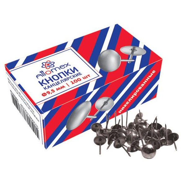 Кнопки канцелярские 'Attomex', 9,5 мм , (100 шт;уп), 4132301
