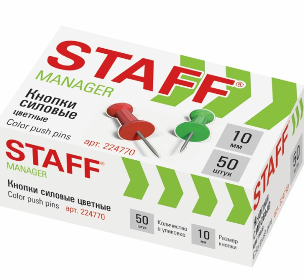 —Силовые кнопки-гвоздики цветные STAFF, 50 шт., в картонной коробке, 224770