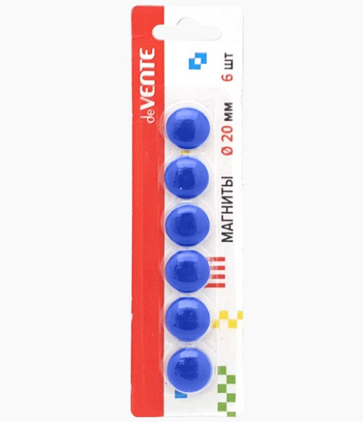 Магнит для доски офисной 'deVENTE' Ø 30 мм, 5 шт, цвет синий, в картонном блистере, 6021900