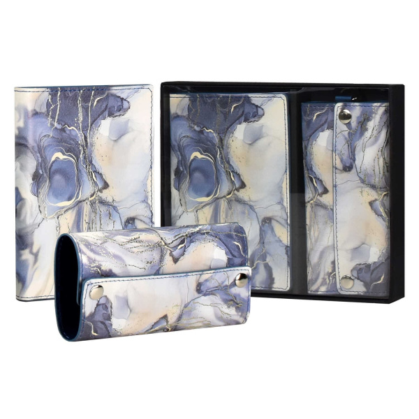 Обложка для паспорта + ключница (набор подарочный) арт. 57741; 20 ( НАППА СИНИЙ МРАМОР)