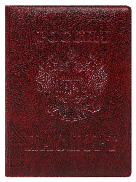 —Обложка на паспорт, 'Стандарт', мягкая экокожа, бордовая, ОП-7703