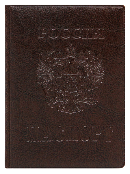 —Обложка на паспорт, 'Стандарт', мягкая экокожа, коричневая, ОП-7702