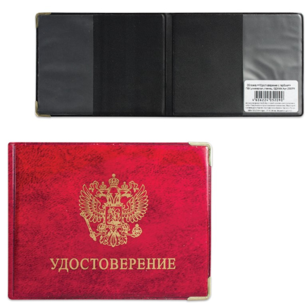 —Обложка для удостоверения с гербом, 110х85 мм, универсальная, ПВХ, глянец, красная, ОД 6-04