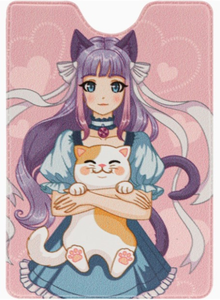 —Обложка на пропуск;проездной, 'Девочка аниме и котик', ОП-2701
