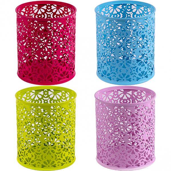 Стакан канцелярский металлический круглый, с узором, цветной, AR-803-3