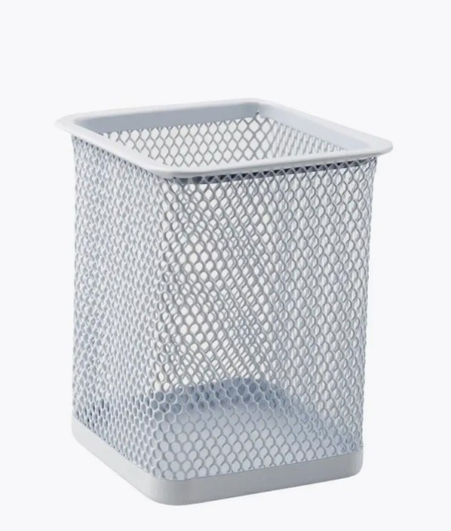 Стакан-подставка для ручек металл. квадрат, серебро цвет, AR-804;БЕЛЫЙ