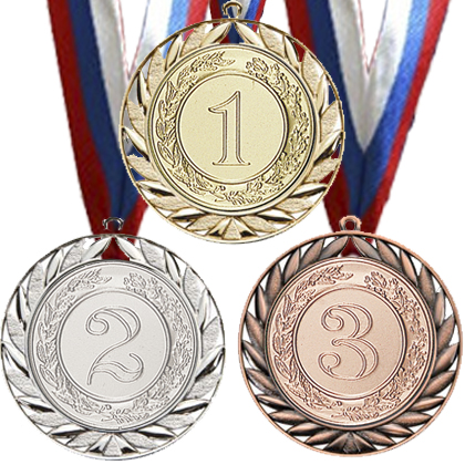 Медаль 3 место металлическая, d-4 см., лента триколор