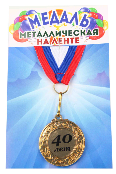 Медали именинникам на ленте металлические 40 лет D=4 см.