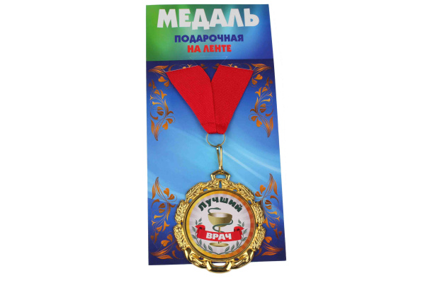 —Медаль подарочная на ленте металлическая Лучший врач D=6,5 см.