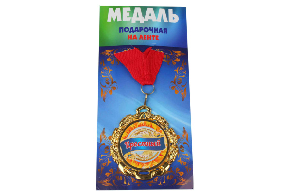 —Медаль подарочная на ленте металлическая Крестный D=6,5 см.