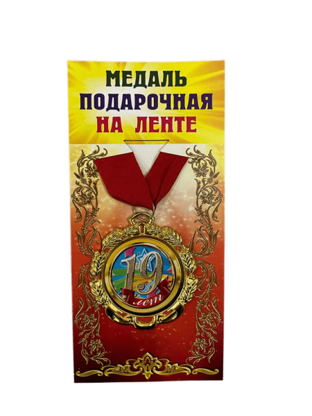 —Медаль подарочная на ленте металлическая 19 лет D=6,5 см.
