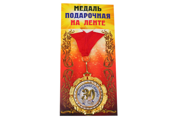 —Медаль подарочная на ленте металлическая Жемчужная свадьба 30 лет D=6,5 см.