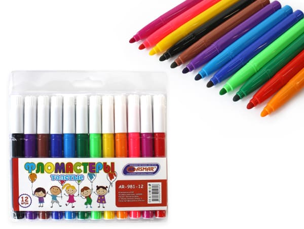 —Фломастеры 12 цв ,толстые, белый колпачок, пластиковый блистер, европодвес, AR-981-12