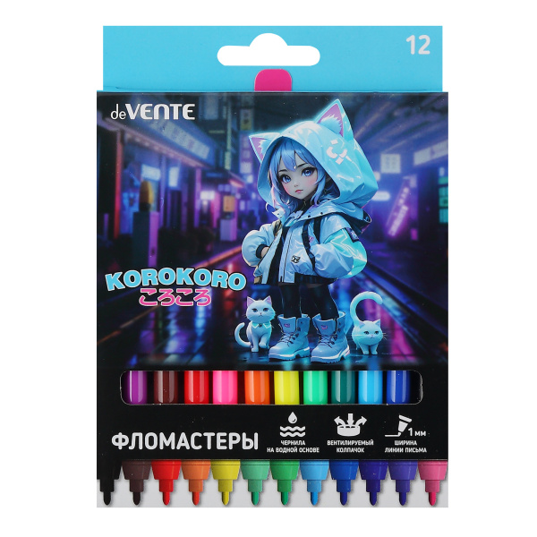 Фломастеры 'deVENTE. Korokoro' 12 цветов с вентилируемым колпачком, 5081530