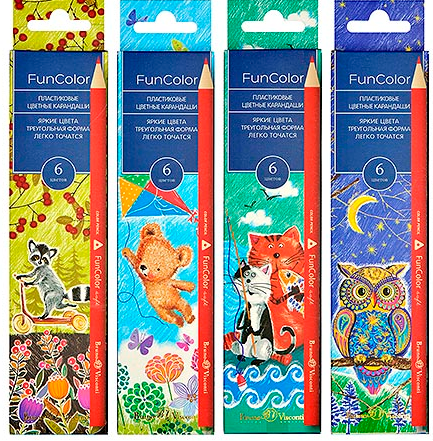 —Карандаши ' Bruno Visconti ' Funcolor 6 цв , трехгранные , дизайн в ассортименте, 30-0065