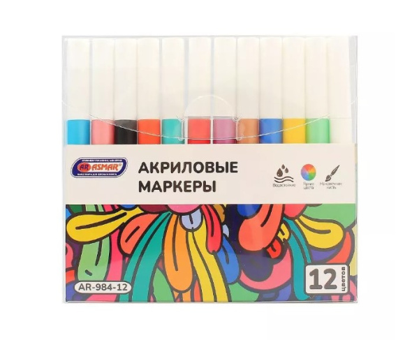 —Маркеры акриловые 'ASMAR', водостойкие, наконечник-кисть от 0,5 до 5 мм, (12 шт;уп), AR-984-12