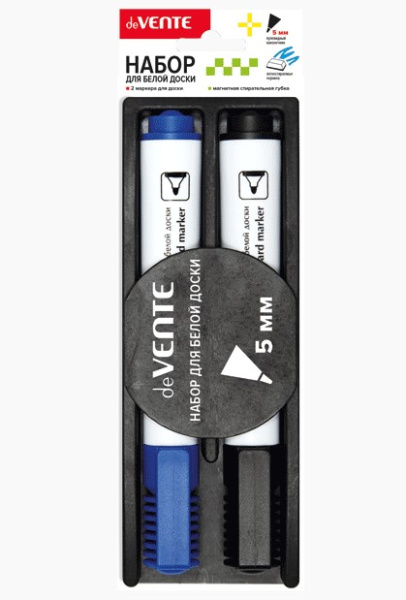 Набор маркеров для белой доски 'deVENTE' + магнитная стирательная губка (02 цв - син, черн), 5040500