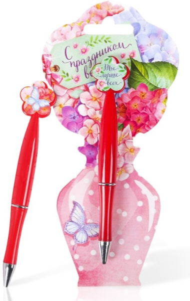 —Ручка шариковая, синяя 1,0 мм, пластиковая с цветком 'С праздником 8 Марта', 2187590