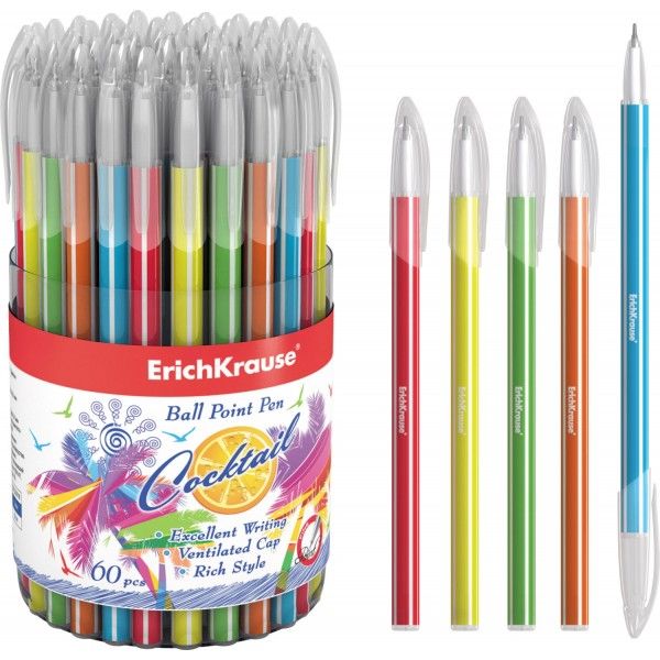 Ручка шариковая ErichKrause 'Cocktail' синий, 0.7 мм, узел игольчатый, ассорти, 33518