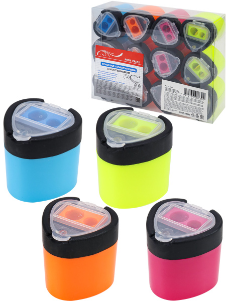 Точилка для карандашей 'PROF-PRESS' 2 отверстия, пластмассовая с контейнером, ТК-0330