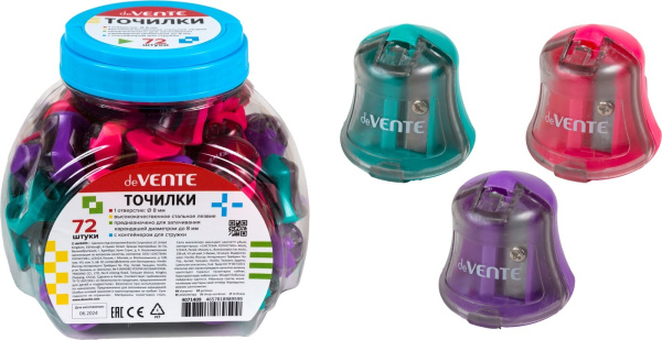 Точилка для карандашей 'deVENTE' 1 отверстие, с контейнером, пластмассовая, 4071409