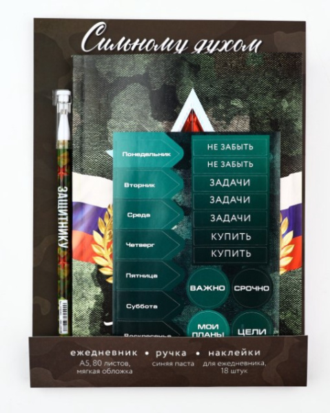 —Подарочный набор 'С 23 февраля. Сильному духом' ежедневник А5, 80 листов, наклейки и ручка, 10638982