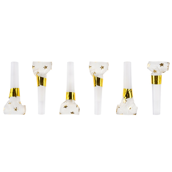 Карнавальные язычки гудки, Звезды Люкс, Белый;Золото, Металлик, 6 см, 6 шт. в упак. 6232260