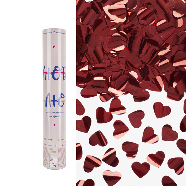 —Пневмохлопушка 12';30 см, сердца, фольга красные, 723028