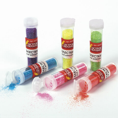 —Блестки (глиттер) ОСТРОВ СОКРОВИЩ, НЕОН, 7 грамм, цвета ассорти, в дисплее, 662219
