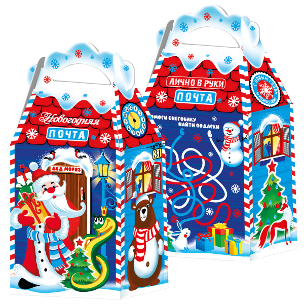 —Новогодняя упаковка 'ПОЧТА', 1200 гр. картонная подарочная коробка 2025 год змеи, 15040097