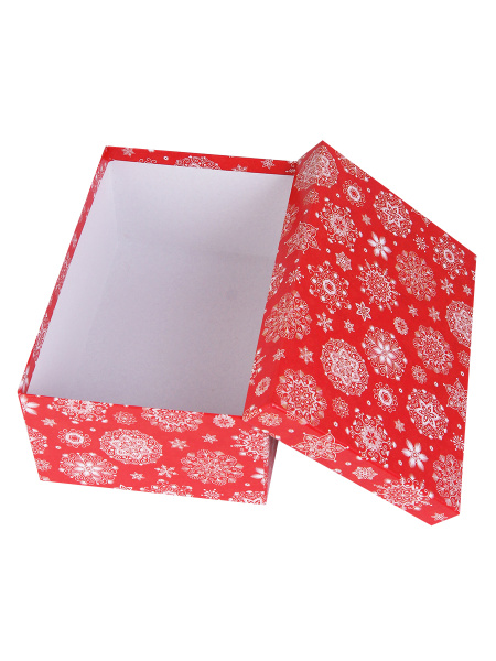 —Коробка подарочная Miland 'Снежинки на красном' 24х16х10 см, прямоугольная (Серия 10в1) картон, 1543