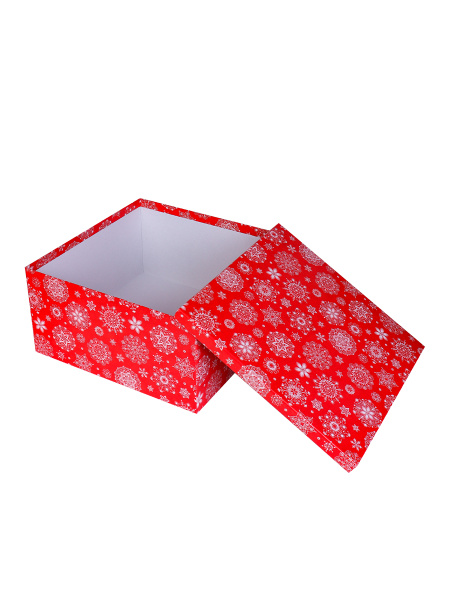 Коробка подарочная Miland 'Снежинки на красном', 17х17х8 см., квадратная (Серия 11в1), картон, 1031