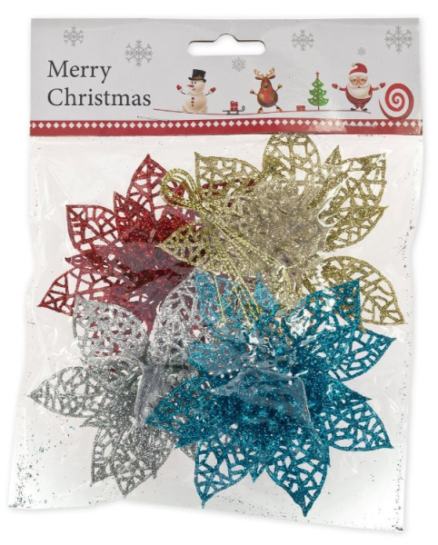 —Новогодние украшения с блестками 10 см, Пуансеттия, (4 шт), 678-092