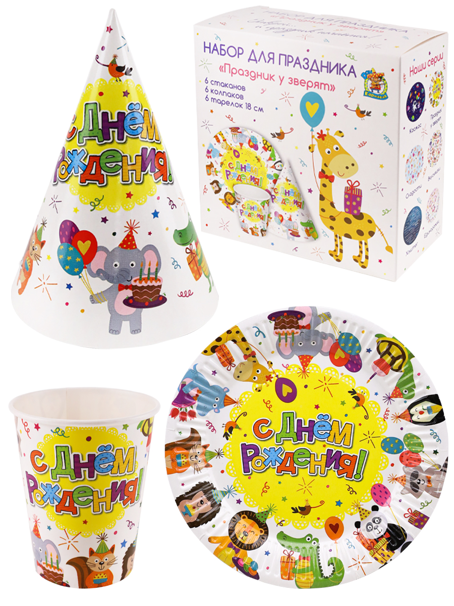 Набор для праздника Хэштег (тарелка 6 шт, стаканы 6 шт, колпаки 6 шт), ФЛ-6241
