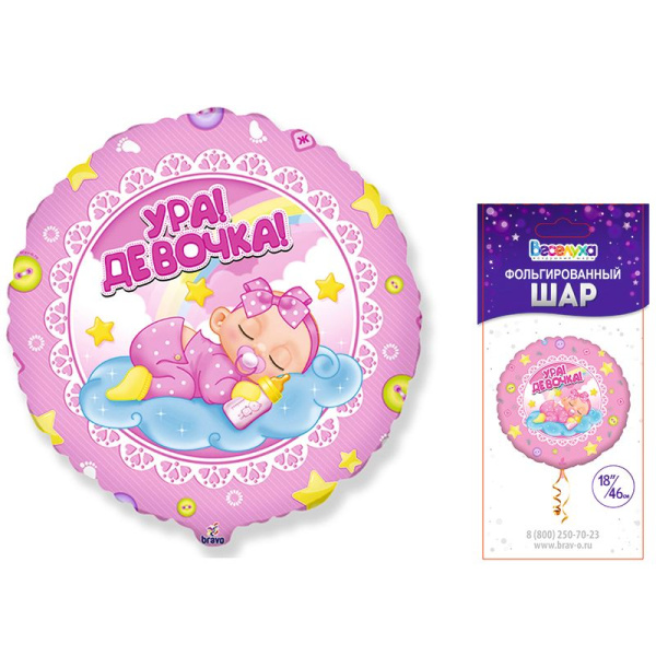 —Шар фольга 18' Веселуха 'Ура! Девочка!' круг, в уп., 893-QX