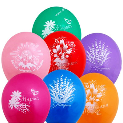 —Шар латексный с рисунком 12';30 см , 8 Марта, ассорти, 077513
