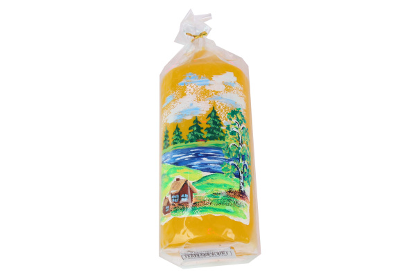 —Свеча пеньковая декоративная ООО Свеча 'Домики на природе' желтая , 55х130 мм. ручная роспись