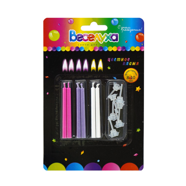 —Свечи для торта с подставками 'Цветное пламя. МИКС', 6 см., 6 шт., картон. 620207