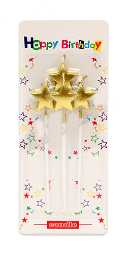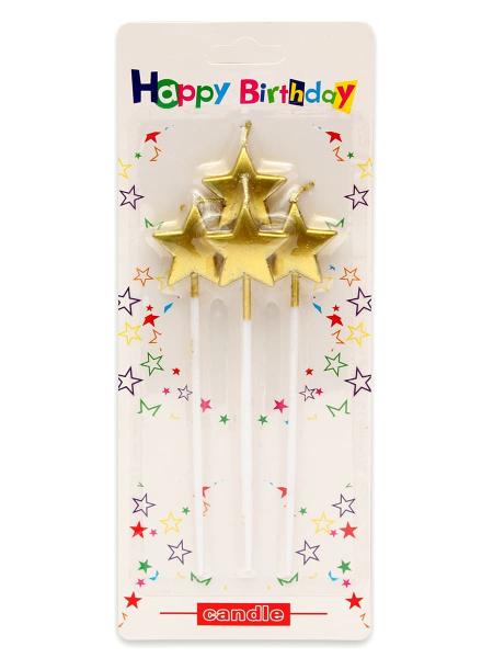 Свечи для торта на длинных пиках 'Золотые звёзды', 4 шт., Миленд, картон. уп., европодвес, С-2466