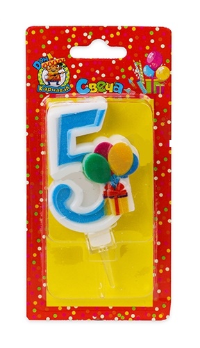 —Свеча для торта 'Цифра 5. 'Весёлый праздник', Миленд, картон. уп., европодвес, С-5929