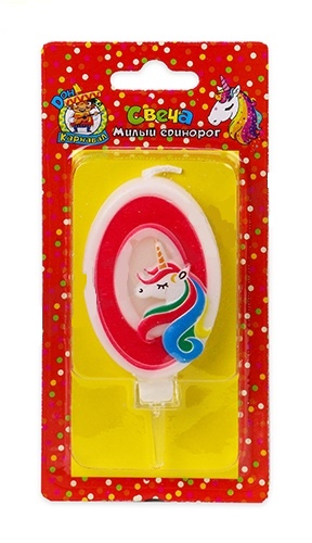 —Свеча для торта 'Цифра 0. Милый единорог', Миленд, картон. уп., европодвес, С-5934